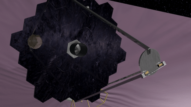 Художественная концепция предлагаемого Космического Телескопа Большого Разрешения (High-Definition Space Telescope), который будет иметь гигантское сегментированное зеркало и беспрецедентное разрешение в оптическом и УФ диапазонах излучения. (NASA / GSFC)
