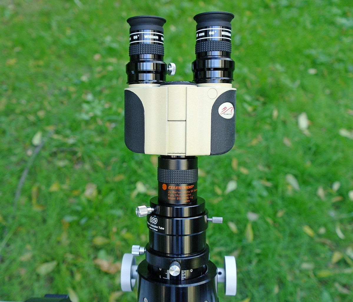 По сравнению с аналогичными биноприставками других производителей биноприставка от William Optics выгодно отличается хорошей базовой комплектацией (при вполне демократичной цене), включающей в себя корректор переднего отрезка и очень приличные, хотя и бюджетные окуляры. Большинство биноприставок других торговых марок не имеет в комплекте поставки дополнительных аксессуаров. Еще одним важным положительным свойством 1,25" биноприставки от William Optics являются необременительные габариты и вес. Её вес вместе с корректором и окулярами сопоставим с весом 2" окуляра средних размеров.