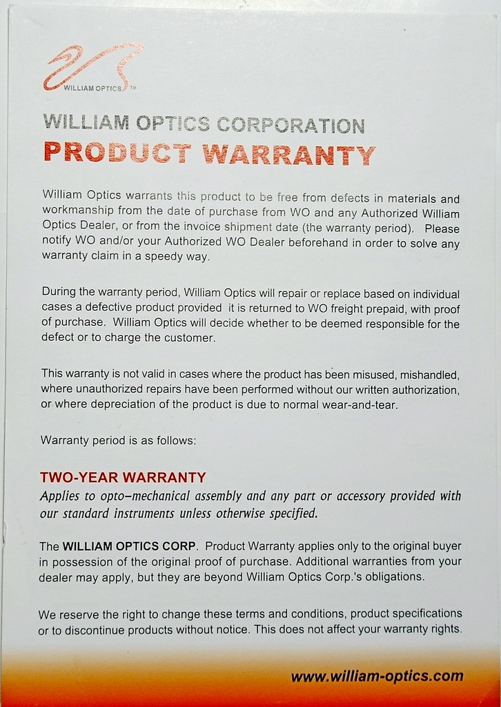 Сбоку на нижней части коробки курсивом написано: https://www.william-optics.com.