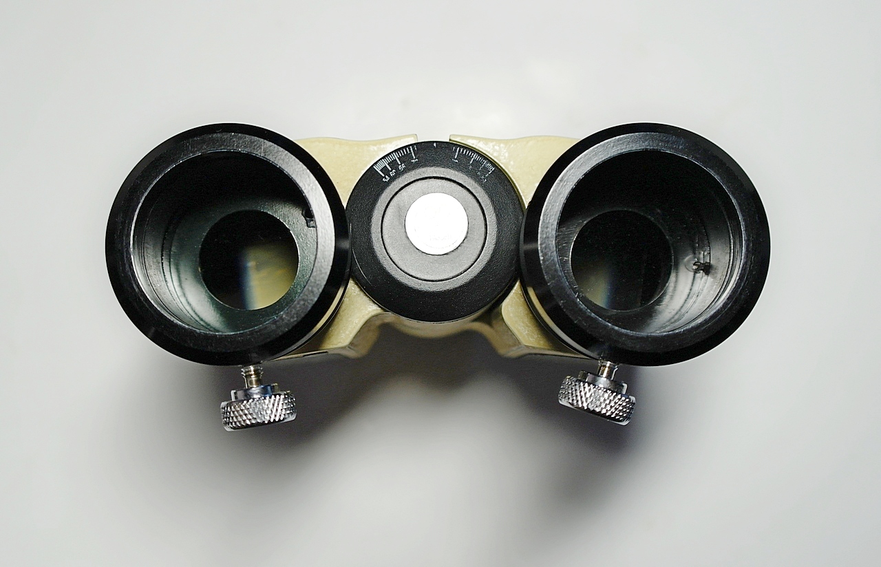 Окулярные втулки окрашены черным лаком в тон окуляров, имеют латунные компрессионные кольца, которые зажимаются блестящими винтами М4 с большими круглыми головками (Ø13 мм) с накаткой по торцу. Обе окулярные втулки имеют диоптрийную подстройку.