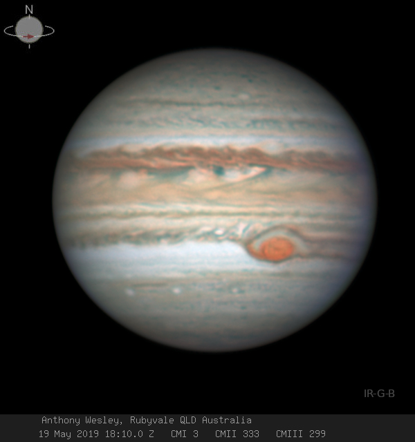Действительно, сейчас самое время следить за происходящим. Юпитер приближается к Земле для близкого столкновения в июне 2019 года. В течение недель вокруг противостояния 10 июня Юпитер будет сиять в 4 раза ярче Сириуса, самой яркой звезды на небе, и даже маленькие телескопы покажут его бури, спутники и облачные образования в атмосфере.