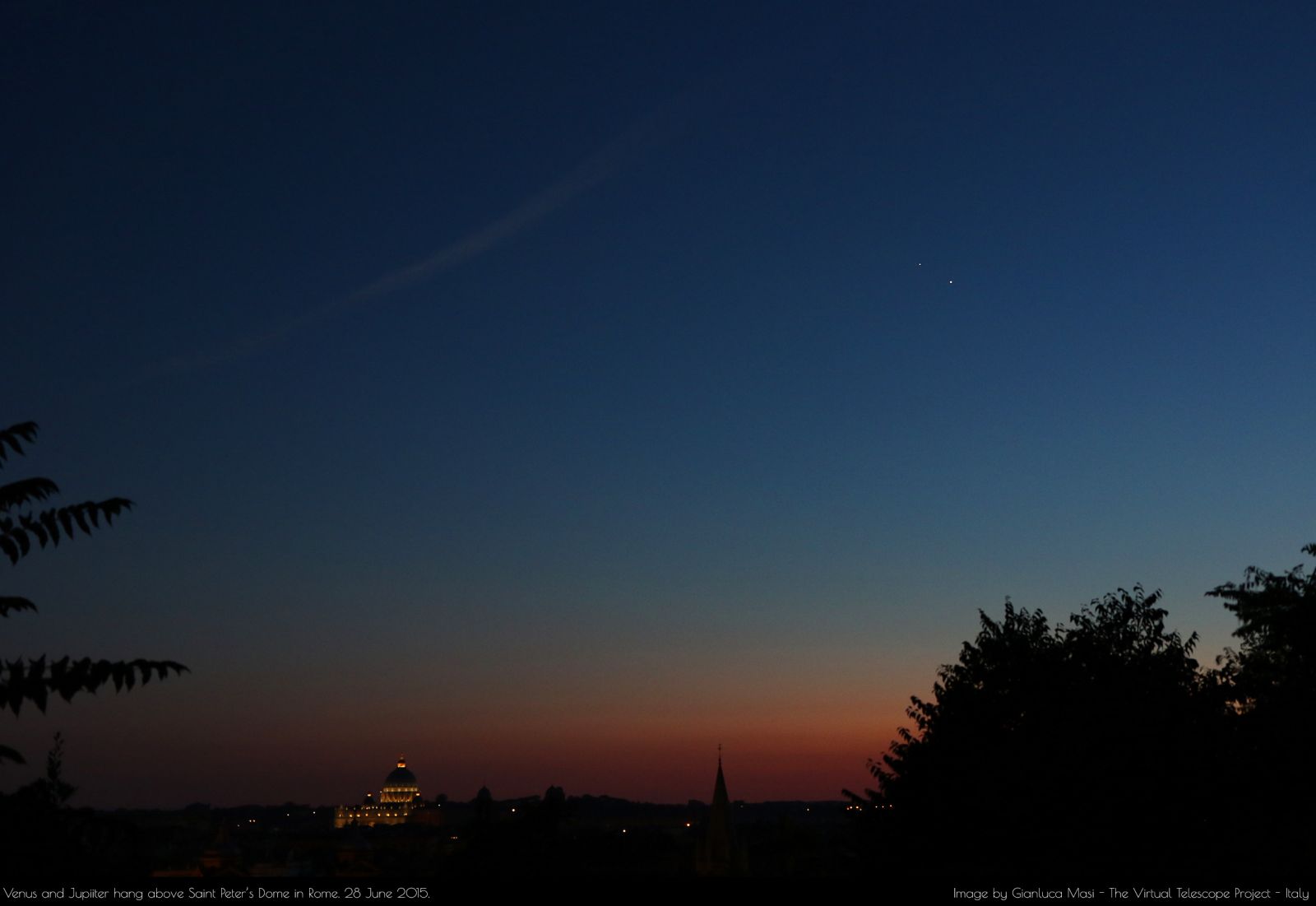Сегодня жители северного полушария Земли смогут наблюдать одно из красивейших событий звёздного неба невооруженным взглядом. Сразу после захода Солнца две самых ярких планеты - Юпитер и Венера, сблизятся на расстояние всего 19 угловых минут (половина диаметра Луны)! В ночь с понедельника на вторник вы сможете наблюдать эту картину на фоне закатного неба.