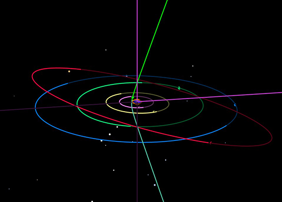колір) майже перпендикулярна площині єкліптики