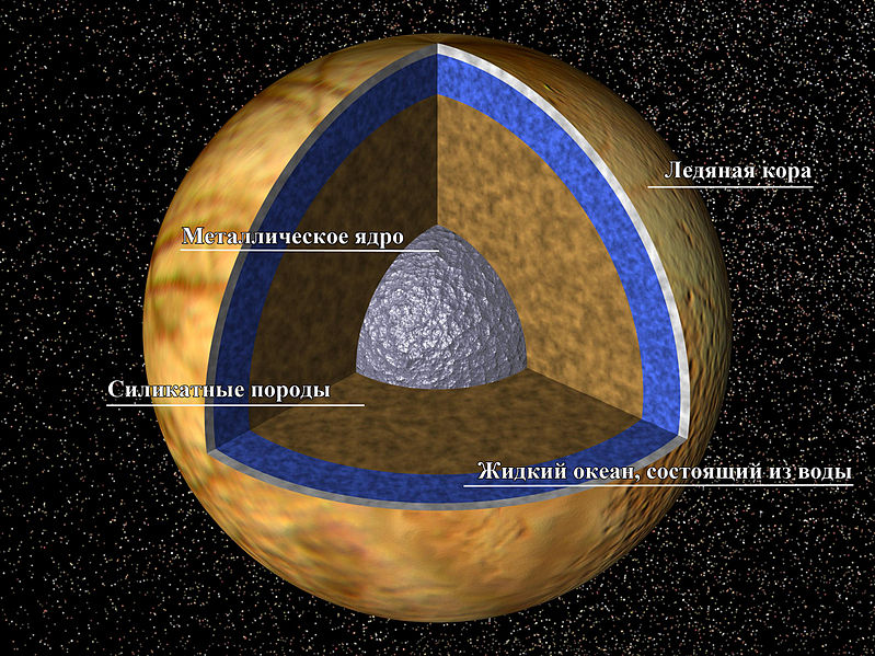 Вся планета покрыта ледяной шапкой, под которой таится глубокий океан из обыкновенной воды, подогретой до комфортной температуры изнутри планеты. Мощное магнитное поле Юпитера и поле железного ядра Европы, защищает поверхность от радиации и заряженных солнечных частиц. В этом комфортном защищённом океане не только может расположиться новая колыбель человечества, но и развиться другие, новые формы жизни.