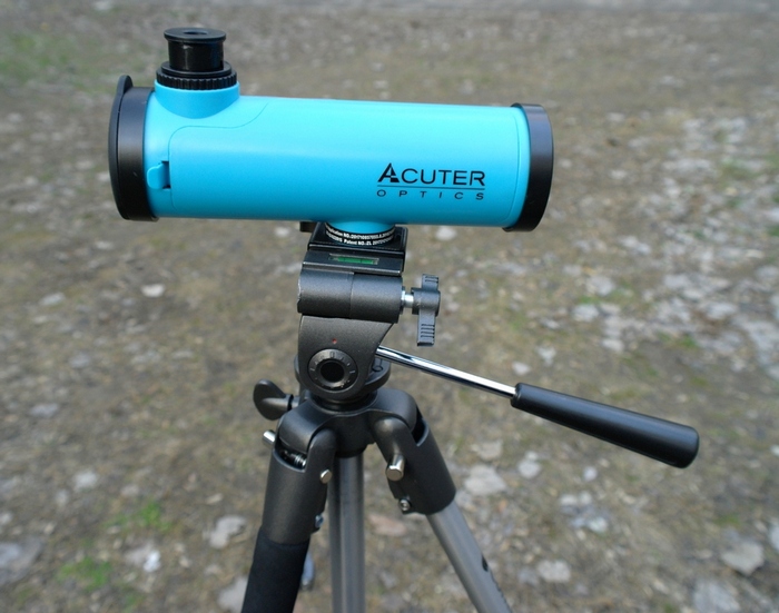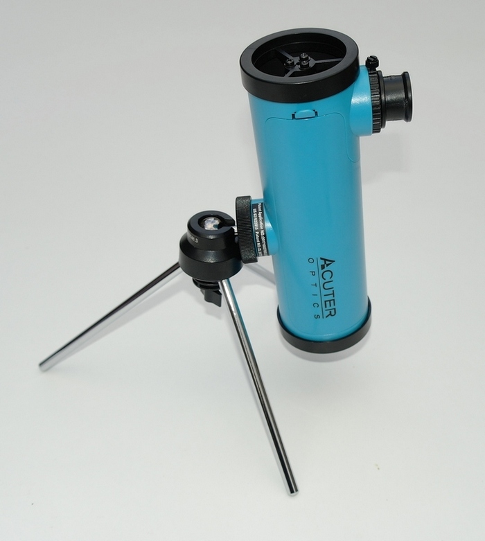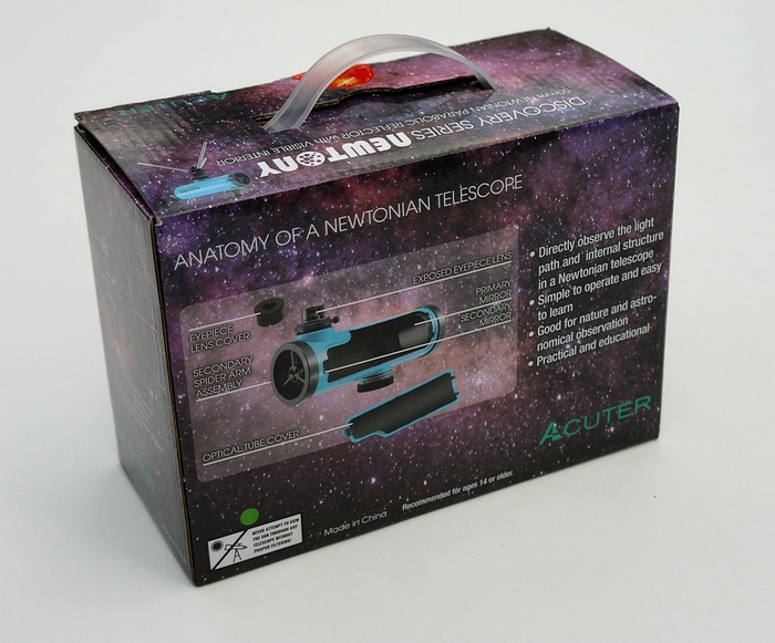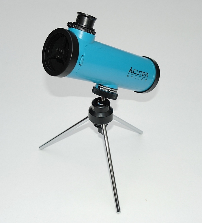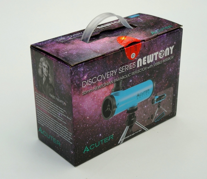 Очевидно ностальгия по прадедушке современных ньютоновских телескопов вдохновило компанию Acuter выпустить его близкий аналог. Для того, чтобы он пришелся «по вкусу» большинству потенциальных начинающих астрономов в компании решили его сделать примерно в тех же габаритах что его средневековый прадедушка, а, чтобы максимально удешевить производство немного изменили конструкцию в сторону удобства пользования и технологичности производства. Чтобы еще улучшить и без того хорошую идею, сделали съёмную боковую крышку, чтобы начинающий «ученый» мог воочию «подсмотреть» конструкцию и принцип действия этого удивительного прибора.