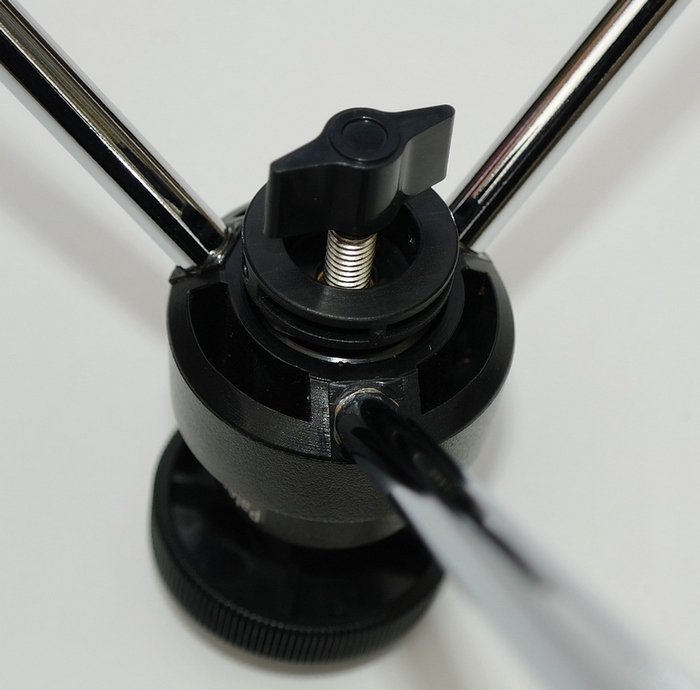 В верхней части штатива выполнена выборка для того, чтобы при наведении в зенит фото винт не упирался в корпус штатива.