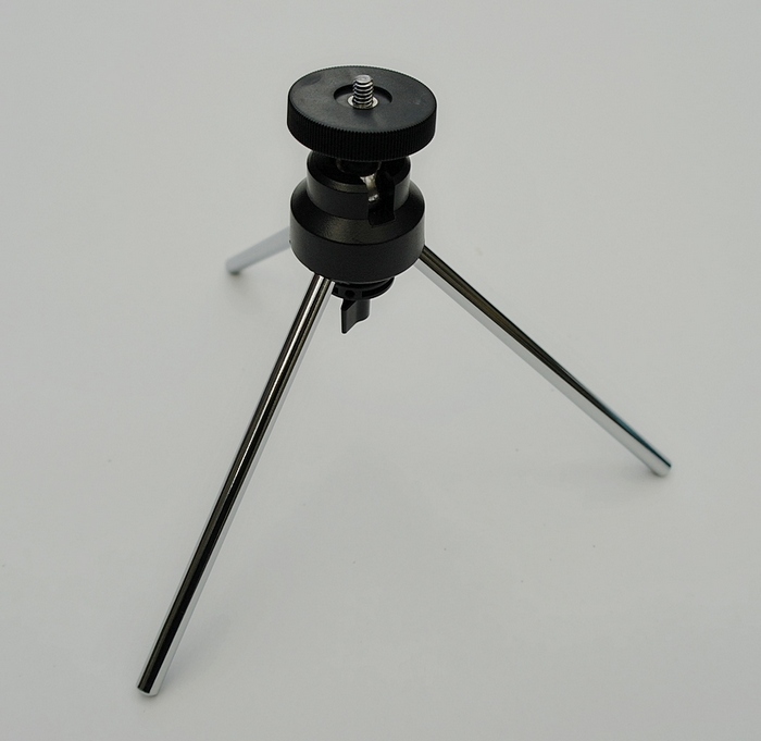 Комплектный штатив азимутальный, с шаровой головкой. В верхней части головки установлен шар с фото винтом и резьбой 1,4". Шар в головке фиксируется стопорным винтом М5 с плоским флажковым маховичком, проходящим с низу вдоль оси штатива. Длина штатива 48 мм, максимальный диаметр 44 мм.