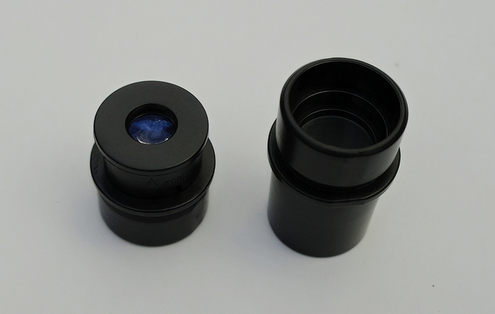 Комплектный окуляр системы Кельнера имеет пластиковый корпус, но «настоящие» стеклянные линзы, да еще и с однослойным просветлением голубого цвета.