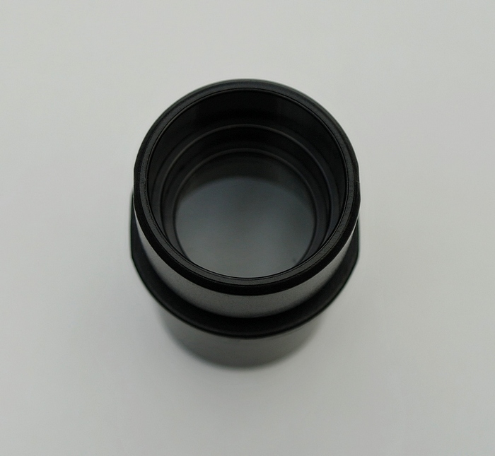 Поскольку окуляр несёт ещё и «учебные» функции, то в линзоблоке сделан специальный вырез (окуляр как бы препарирован), для того, чтобы была видна его структура, как и у трубы телескопа. Поскольку вырез не очень благотворно влияет на работу окуляра, то в «свободное от учебных целей время» он покрывается чёрным пластиковым защитным колпачком, который закрывает доступ света к боковым граням линз. Окуляр имеет просто «комариный» вес – всего 16 гр. Диаметр полевой и глазной линз 12 мм, диаметр полевой диафрагмы 10 мм. Вынос зрачка 8 мм. Измеренное поле зрения 48 о.
