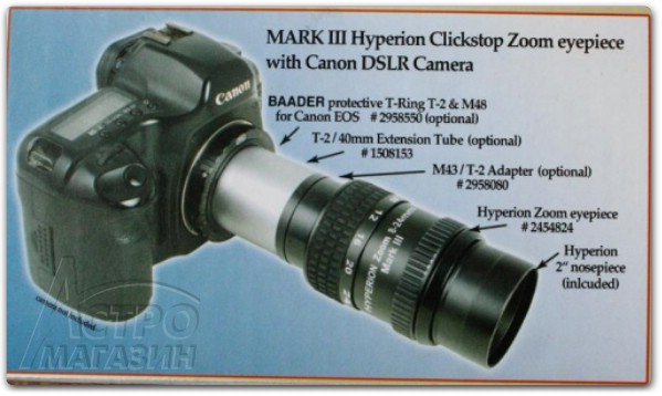 - Baader Planetarium Hyperion Zoom 8-24мм. f=8мм вынос 15мм, f=12мм вынос 12мм, f=16мм вынос 10мм, f=20мм вынос 12мм, f=24мм вынос 15мм.