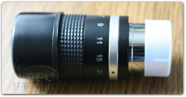 Неплохо реализовано кольцо выбора фокуса у окуляра Synta Zoom 7-21 мм. Оно удобное с приятным рифлением, вращается мягко.