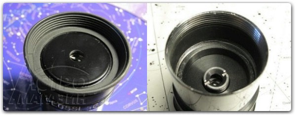 Этот окуляр оставил несколько двоякие впечатления. С одной стороны, распаковав симпатичную картонную коробку в которой поставляется окуляр, мы достаём очень качественно и красиво изготовленный Плёссл. Окуляр снабжён двумя плотными крышками из белого пластика, который очень плотно прилегают к корпусу, а в морозную погоду их даже проблематично снять, но зато оптика гарантировано будет защищена от пыли. Внешний вид модели соответствует общему дизайну популярной линейки OMNI и действительно механика изготовлена очень точно и аккуратно. Корпус оптического блока выточен из алюминия и имеет износостойкое и красивое покрытие серого оттенка, на котором нанесен логотип фирмы и надпись: «OMNI 6mm Plossl Fully Multi-Coated Taiwan». На корпусе установлен наглазник из довольно жёсткой резины, но если в более длиннофокусных моделях это воспринимается нормально, то в 6мм с небольшим выносом зрачка, данный наглазник оказывается жестковат, когда необходимо приставить глаз вплотную к окуляру. На резьбе М28 к корпусу прикручивается алюминиевая посадочная юбка, которая снаружи имеет качественное анодирование в цвет алюминия, а изнутри хорошо зачернена. На юбке имеется проточка под зажимные винты или компрессионное кольцо. Конечно же, резьба внутри юбки подходит для установки соответствующих фильтров. В целом окуляр кажется больше, чем говорит о нём его фокусное расстояние. Размеры этого 6мм окуляра больше сопоставимы с аналогичным окуляром как минимум 12мм фокусом.