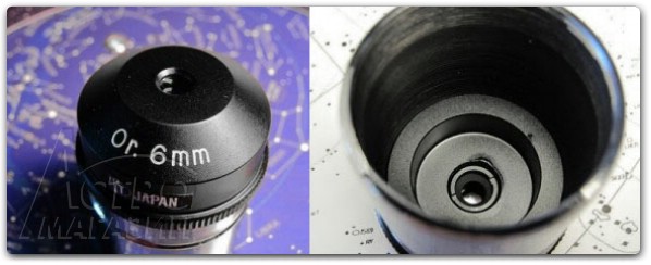 Окуляр не оборудован полноценным наглазником, но имеет небольшой выступ ближе к кромке корпуса. На боковой стенке красуется выгравированная надпись: «Baader Planetarium Genuine Ortho 6mm Phantom MC-coated».
