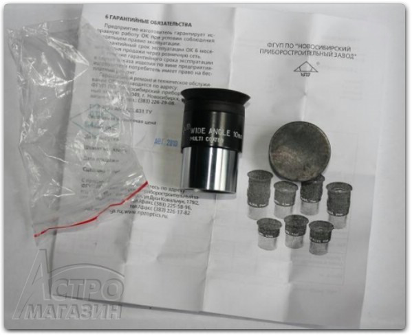 Противоречивое впечатление оставил о себе НПЗ ОК-1 10 мм. С одной стороны простая картонная коробка и стандартный для НПЗ вид окуляра, а с другой – присутствующая в коробке документация на окуляр со всей необходимой информацией как об окуляре, так и о данной серии и гарантийный талон.
