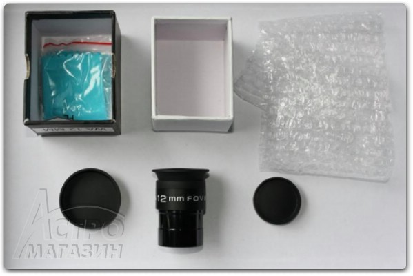 Остальные испытываемые окуляры упакованы достаточно скромно. DeepSky WA Black 12mm 60 градусов упакован в картонную коробку, в которую уложен полностью черный окуляр, снабженный двумя крышечками. Помимо них в окуляре находится упакованная тряпочка для протирки оптики.