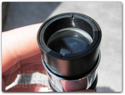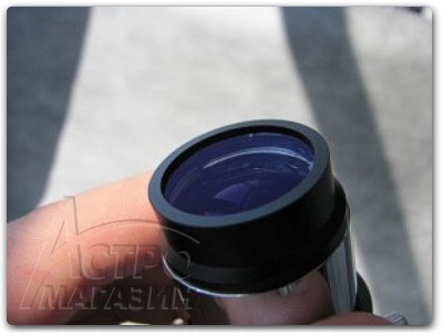 Оптический блок представлен в оправе в виде усечённого конуса и радует наличием прекрасно просветленной двухлинзовой склейки. Просветление хорошее и многослойное, это уже не фиолетовое химическое просветление, типичное для постсоветской оптики, а вполне современное покрытие, которое призвано обеспечить хороший контраст и цветопередачу.