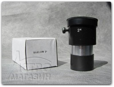 Исполнение традиционно для завода спартанское, корпус абсолютно без изысков, выкрашен чёрной краской, не особенно износостойкой, на корпусе присутствует лишь гравированная надпись «2х». Линза Барлоу разбирается на три части, это съёмный оптический блок, посадочная втулка, корпус под установку окуляра с зажимным винтом. Линза комплектуется парой крышек на оптический блок и окулярную часть. Чернение торцов линз и внутренних поверхностей качественное и работает вполне эффективно.