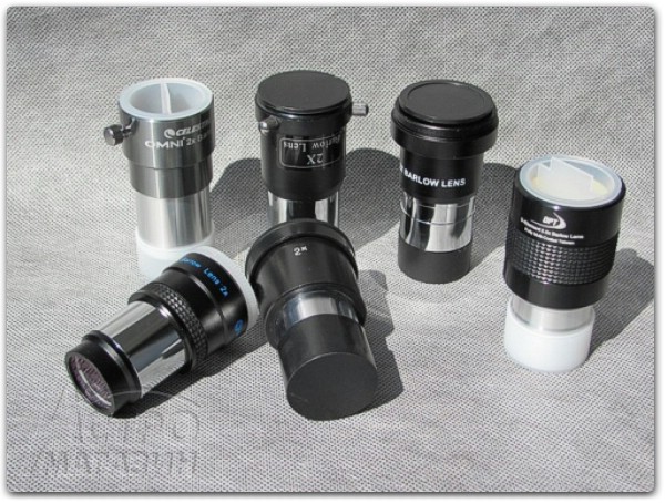В нашем тест-обзоре участвовали шесть разных линз Барлоу, некоторые из которых представляют низшую ценовую категорию, а некоторые среднюю. В целом же, по принципу своей конструкции первые пять участников похожи, это классические ахроматические линзы Барлоу, отличающиеся между собой лишь качеством исполнения и дизайна, только лишь последний образец OPT 2.5x, 1.25″ относится к семейству выше упомянутых апохроматических линз и выполнен по конструкции похожим на известную Celestron Ultima 2х.