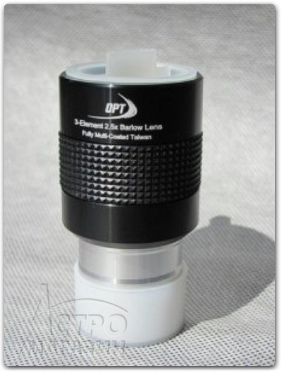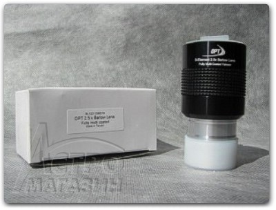 Это уже представитель апохроматического типа линз Барлоу, преимуществом которого, для визуальных наблюдений, становится лучший уровень коррекции полевых аберраций. Интересно и то, что в данной Барлоу используется не вполне стандартное увеличение в 2,5х, что может быть очень интересным для пользователей, у которых в наборе окуляров фокусы перекрываются ровно в 2х, как например 25мм, 12,5мм и 6,3мм. С таким комплектом применять 2х линзу Барлоу просто глупо, т.к. она сможет расширить набор на одно увеличение, а вот 2,5х в такой ситуации будет смотреться куда интересней.