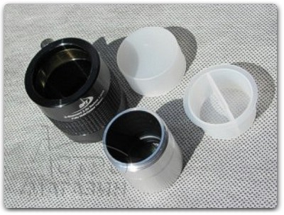 Оптический блок изготовлен в виде обычной ахроматической склейки с многослойным просветлением поверхностей и качественным чернением торцов линз. Линзы спереди и посадочный блок от пыли и загрязнений защищают пара плотных крышек.
