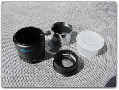 Оптический блок находится в посадочном барреле, поэтому линза разбирается на две части – это собственно юбка с оптическим блоком, имеющая проточку под фиксатор фокусёра, и посадочный корпус под окуляр, имеющий зажимной винт и компрессионное кольцо, которое предотвращает появление царапин на юбке окуляра. Оптика предохраняется от пыли благодаря двум плотным крышкам.