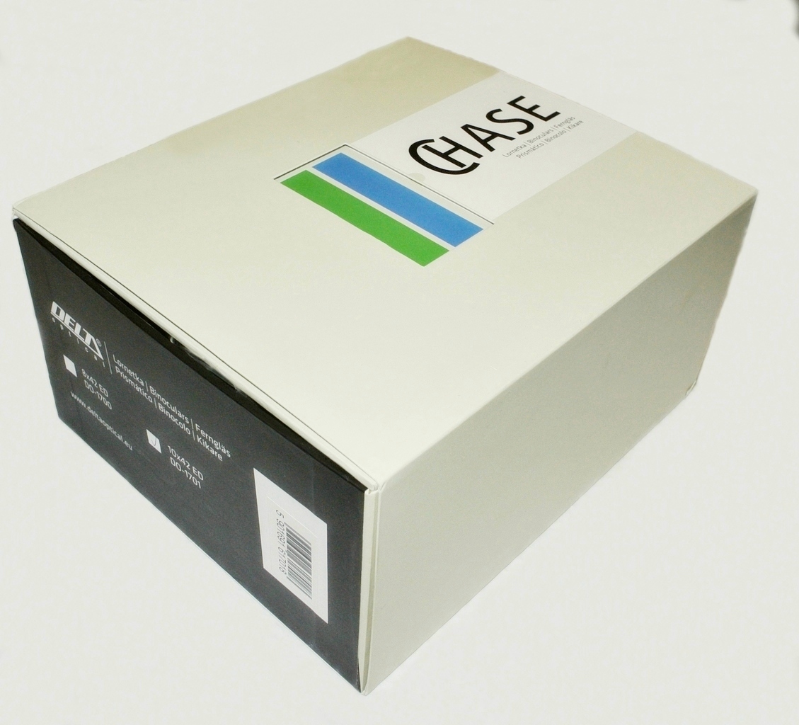 Кроме того, на крышке коробке изображен бинокль и перечислен модельный ряд биноклей Chase ED.