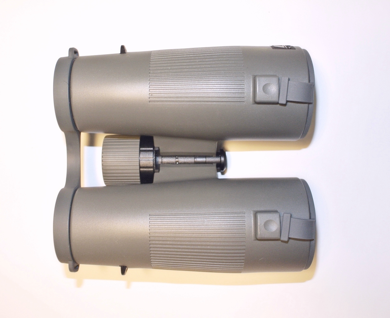 Тубусы бинокля изготовлены из магниевого сплава и обтянуты снаружи резиноподобным покрытием серого цвета. Покрытие имеет гладкую фактуру, отлично прилегает к трубам и не издает неприятного запаха.