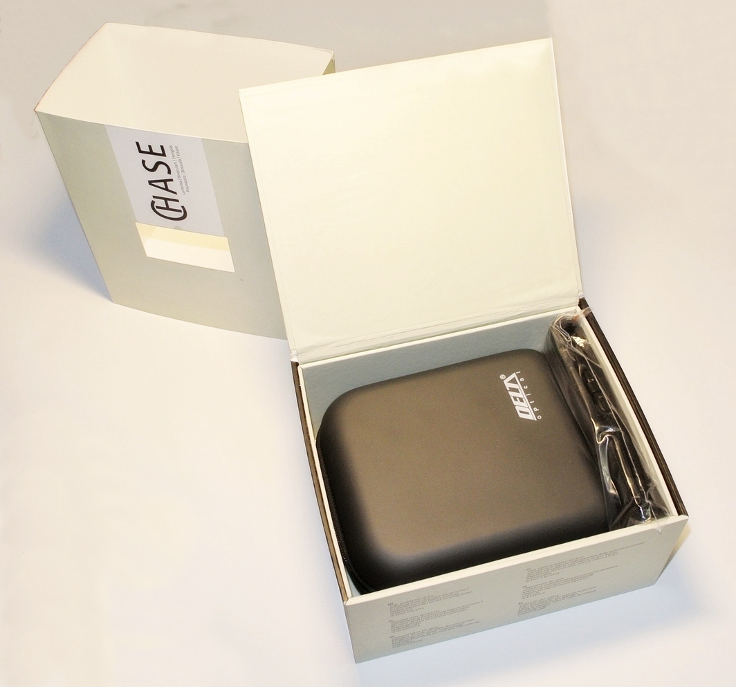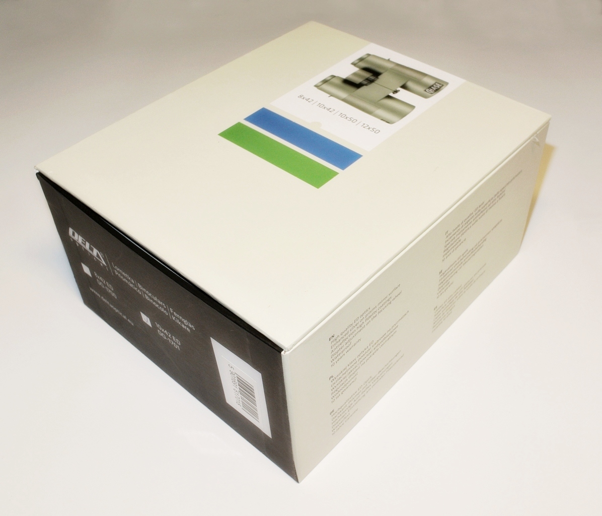 Коробки, в которых поставляются бинокли Delta Optical Chase ED, оформлены сдержанно и со вкусом.