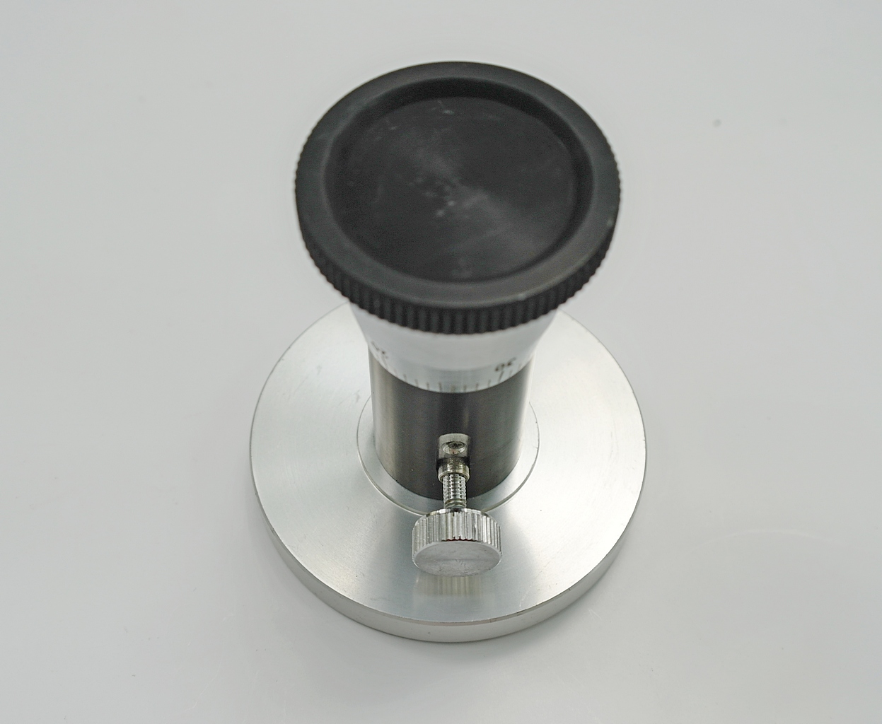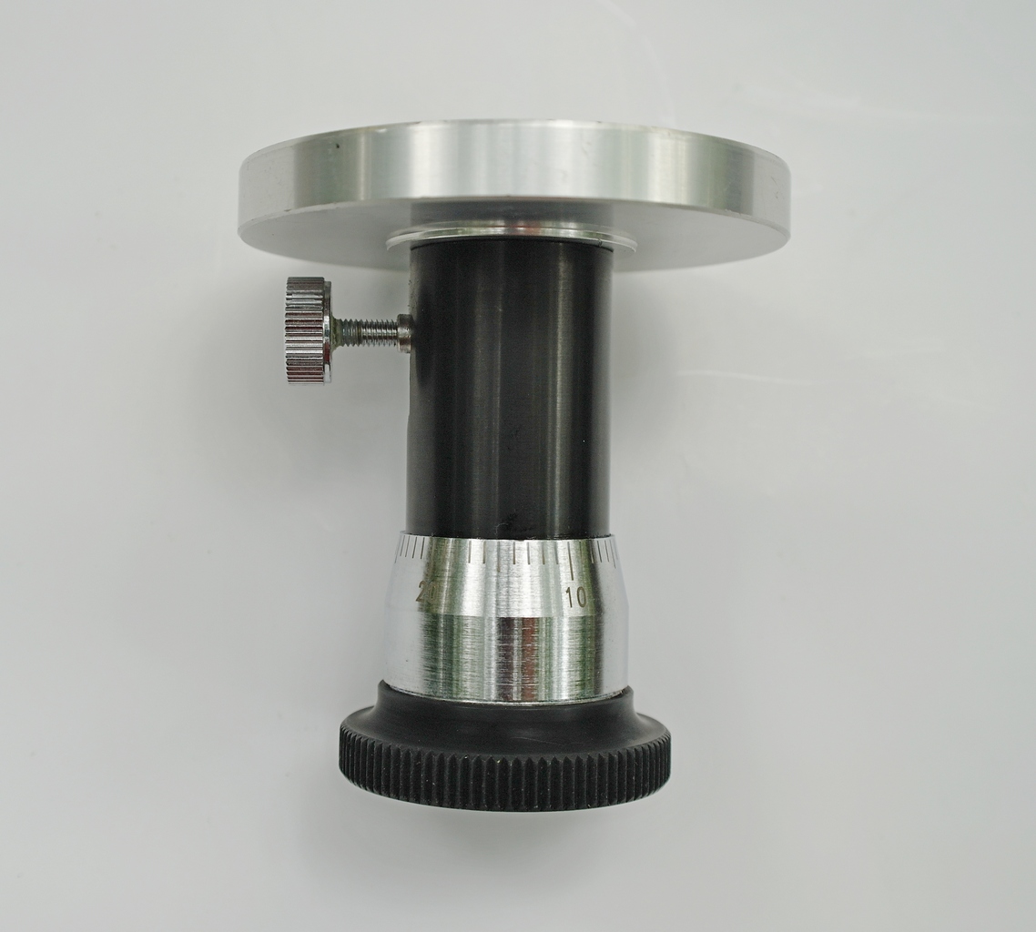 Нижняя часть корпуса большего диаметра, чем верхняя и изготовлена из никелированного металла. В верхней, конусной ее части по окружности нанесена шкала с цифрами от 0 ...10 и так далее до пятидесяти. Цифры означают микроны. Цена деления шкалы один микрон.