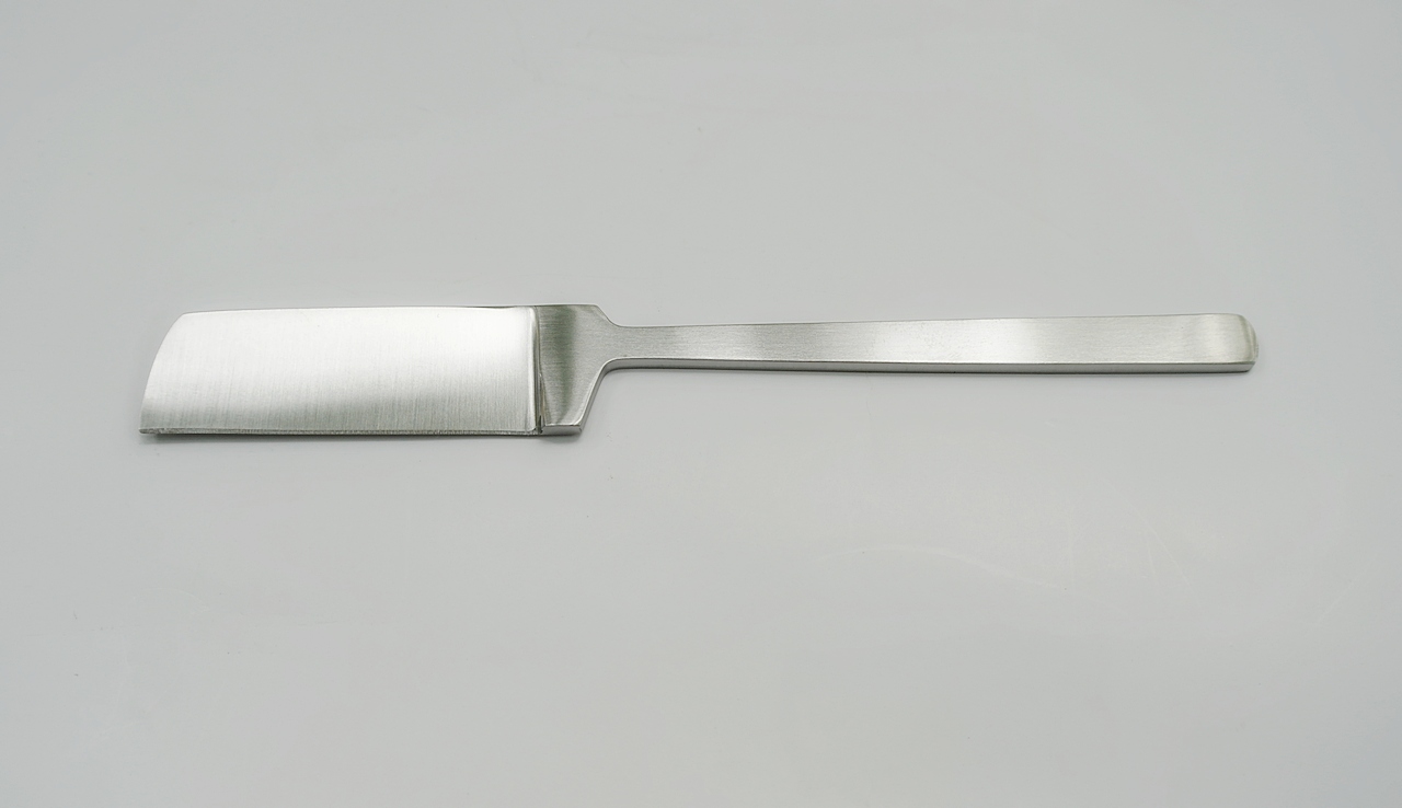 Лезвие для нарезки биоматериала имеет режущий профиль типа Chisel-shaped (D) и напоминает по форме опасную бритву. Сейчас такими бритвами уже никто не пользуется, но наши прадеды были хорошо с ней знакомы.