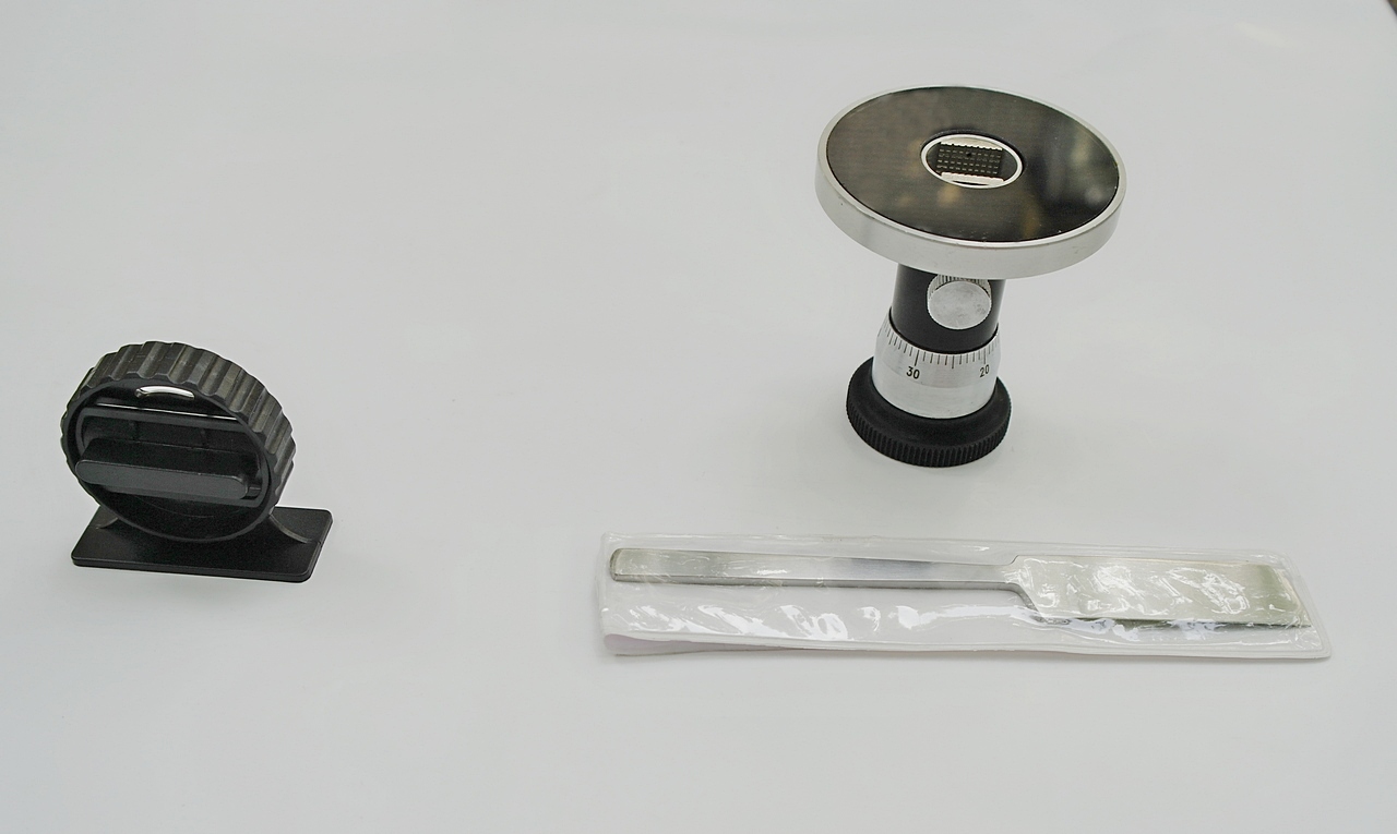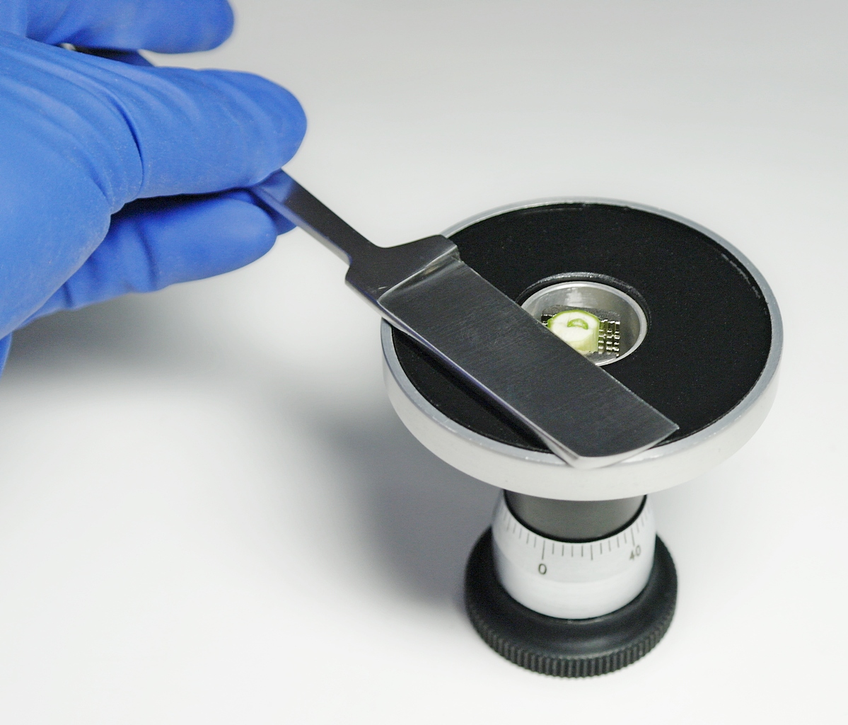 Предназначение стеклянного диска - направлять при нарезке образков лезвие, идущее в комплекте с микротомом. Для этого поверхность стекла имеет гладкую шлифованную, идеально ровную поверхность.