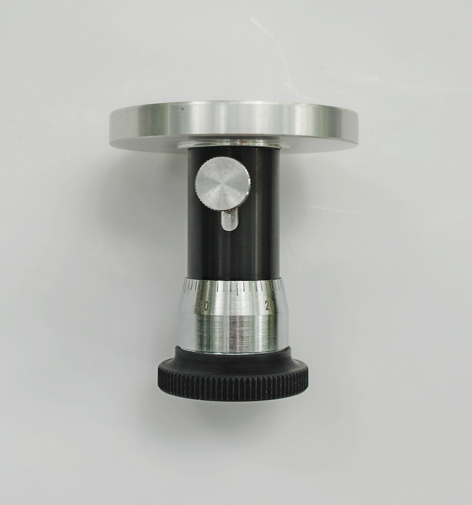 Нижняя часть корпуса запрессована во фланец из черного твердого пластика, имеющий прямую накатку по окружности. Этот фланец выполняет одновременно роль подставки и ручки для приложения усилия вращения.