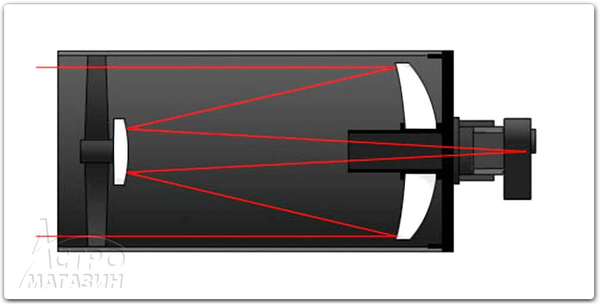 В конце XVII-ого века французский скульптор и художник Гийом Кассегрен предложил модифицировать ранее предложенную двузеркальную систему Грегори. В системе Грегори за фокусом главного зеркала устанавливалось вогнутое вторичное зеркало, которое отражает пучок света обратно в центральное отверстие главного зеркала, за которым и находится окулярный узел. Кассегрен же предложил устанавливать вторичное зеркало перед фокусом главного и предать ему выпуклую форму. Благодаря этому система получилась компактней. В наши дни система Кассегрена в её классическом понимании практически не выпускается мировыми производителями, т.к. изготовление её оптики связано с множеством трудностей. А на практике, кроме несколько более компактных размеров, она не даёт весомого преимущества перед гораздо более простым Ньютоном.