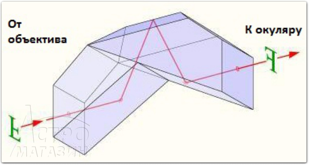 Этот тип призм позволяет пропустить весь свет, собранный объективом, что положительно сказывается на яркости картинки и обеспечивает больший угол обзора. Кроме того, из-за излома оптической оси сокращаются продольные габариты прибора, что делает его заметно компактнее.