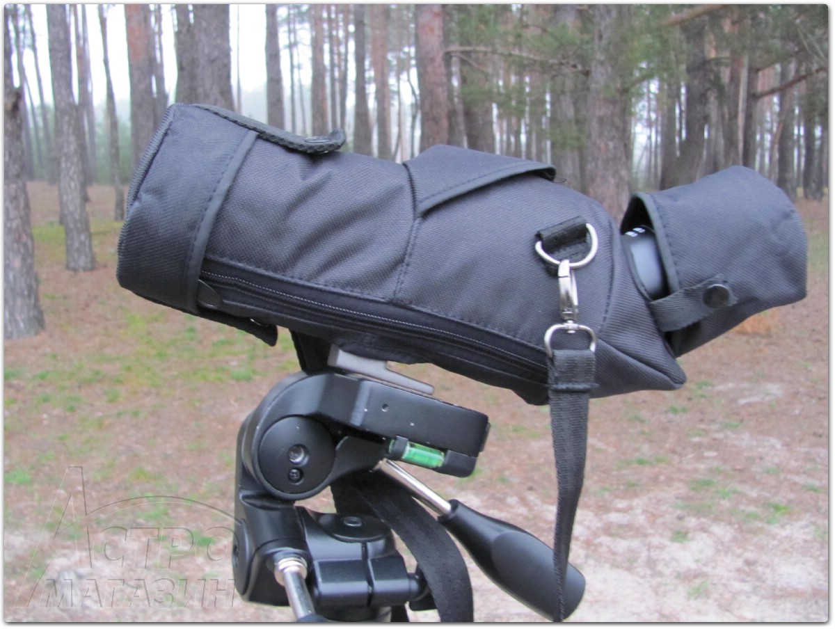 Большинство труб комплектуется простенькими нейлоновыми чехлами, они удобны при переноске и в них можно спокойно транспортировать прибор. Топовые модели имеют чехлы, которые позволяют проводить наблюдения в зачехлённой трубе с открытием отверстий для окуляра и объектива, такому варианту стоит отдать предпочтение.