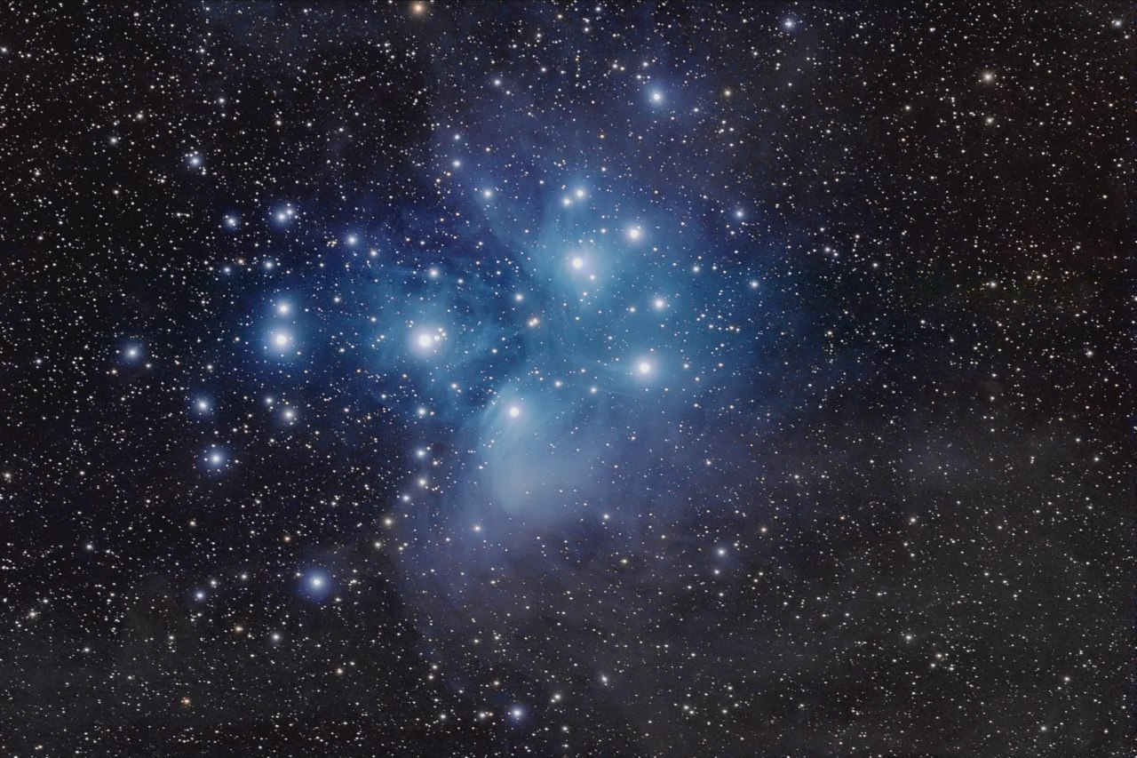 Всем знакомые Плеяды - это тоже рассеянное звёздное скопление, погруженное в пылевые облака.