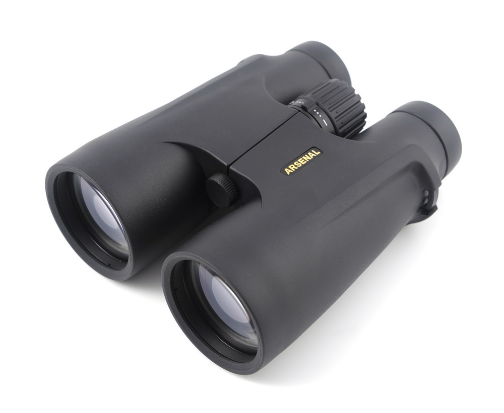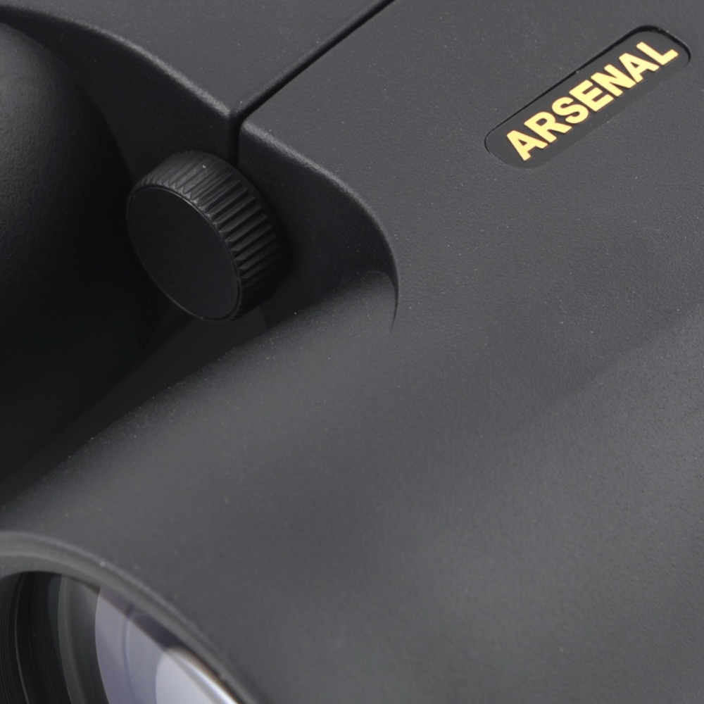 Бинокль Arsenal 10х56 DCF имеет большой барабан центральной фокусировки, обеспечивающий плавную и точную настройку, а также диоптрическую настройку правого окуляра для точного соответствия индивидуальным особенностям зрения. Резиновое покрытие корпуса со специальными выемками для пальцев создает комфортность наблюдений и надежность при удержании бинокля в руках.