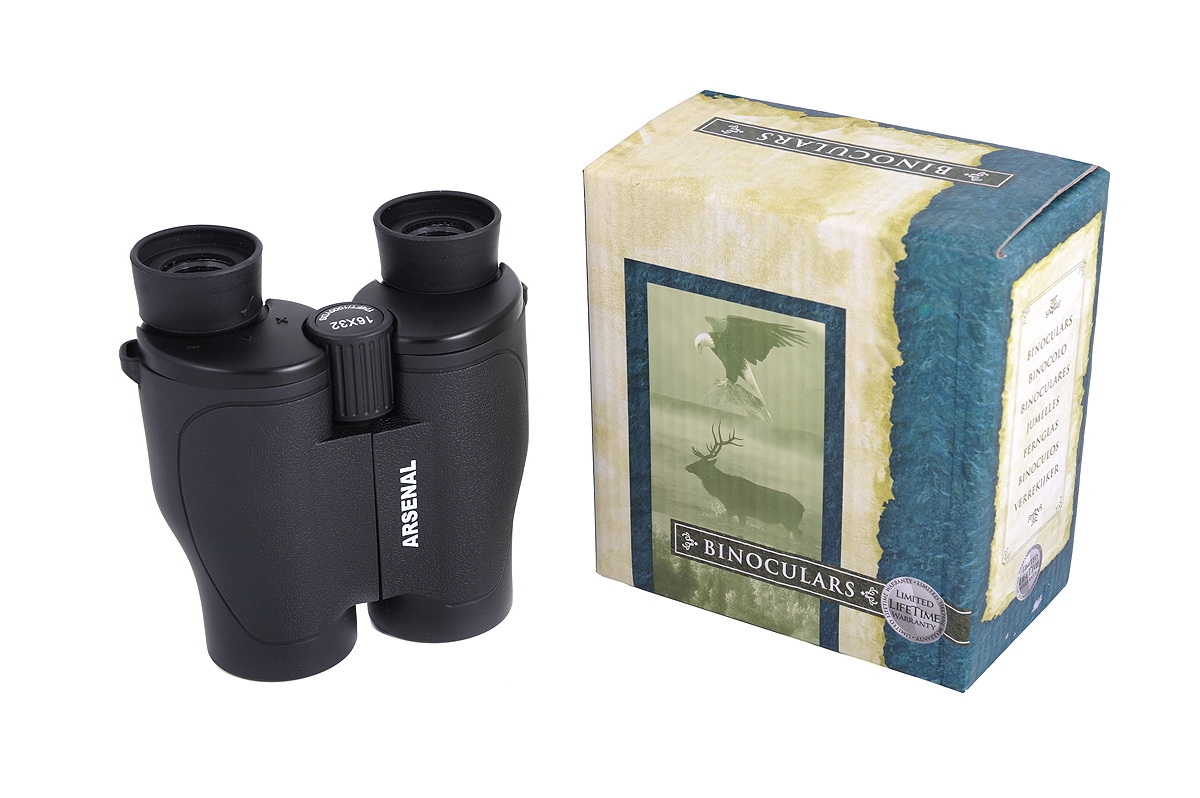 Бинокль Arsenal 16x32 Porro - компактный бинокль с мощным фиксированным увеличением в 16х. Бинокль предназначен для наблюдения за природой, для туризма и активного отдыха. Большое увеличение позволяет максимально детально изучить удаленный объект. Относительно небольшой и легкий бинокль станет отличным спутником во время путешествий. Оптическая схема с использованием инвертированных призм Porro, изготовленных из боросиликатного сорта оптического стекла (BK7), обеспечивает хорошую глубину резкости. Чтобы уменьшить количество отраженного света, и тем самым повысить качество картинки, на линзы бинокля нанесено качественное многослойное просветляющее покрытие.