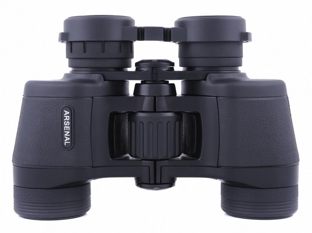 Бинокль Arsenal NBN18-0735N прост в эксплуатации, имеет очень приличную механику, даёт хорошее изображение, оправданное соотношение цена/качество.В комплектации стоит отметить весьма необычные крышки для объективов. Они внутренние и имеют разрезные петли, что позволяет легко закрепить их на шейном ремешке.Окулярная крышка также снабжена петлями и может быть легко закреплена на шейном ремешке.Корпус бинокля имеет традиционные обводы, без ломаных линий. Он практически полностью выполнен из прочного поликарбоната. Исключение составляют лишь элементы центральной балки бинокля, призменных блоков и фокусировочного механизма.Цвет бинокля темно-серый, практически черный. Тубусы и призменные блоки бинокля покрыты декоративными резиновыми накладками аналогичного оттенка.