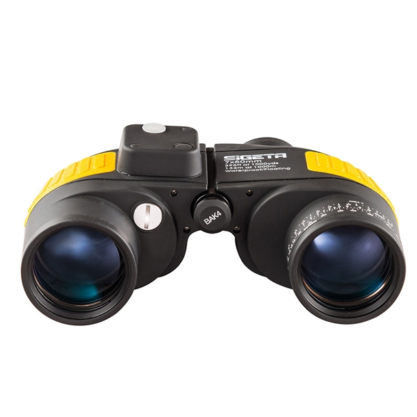 Водонепроницаемость корпуса позволяет погрузиться с биноклем в воду на глубину до 1 метра в течении 30 минут, а газонаполнение защитит от запотевания оптики при перепадах температуры. Также Sigeta Admiral 7x50 комплектуется широким плавающим ремнем желтого цвета, с которым ваш бинокль не затеряется на водных просторах.