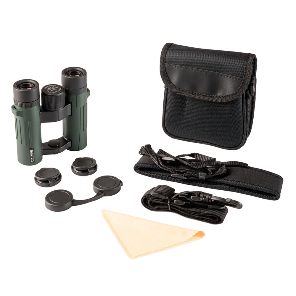 Выдвижные наглазники с тремя фиксированными положениями повышают удобство наблюдения в очках и без них. Защитные колпачки на линзы объективов крепятся на корпусе, что минимизирует вероятность их потери. При необходимости они могут быть полностью сняты. Спаренные колпачки на окуляры оснащены проушинами для крепления к нашейному ремешку. Вместе с биноклем поставляется плотный чехол с возможностью ношения на поясе либо на плече, ремешок для бинокля и салфетка для ухода за оптикой.