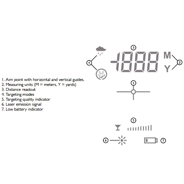 - HUNT - для измерения реальной дистанции до объекта в пространстве во время охоты, без учета уклона. Игнорирование интерференции, возникающей при прохождении лазерного луча через траву и мелкие кусты.