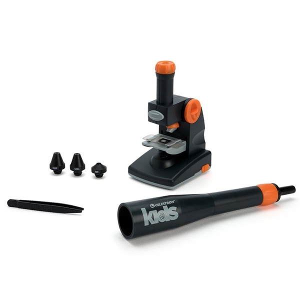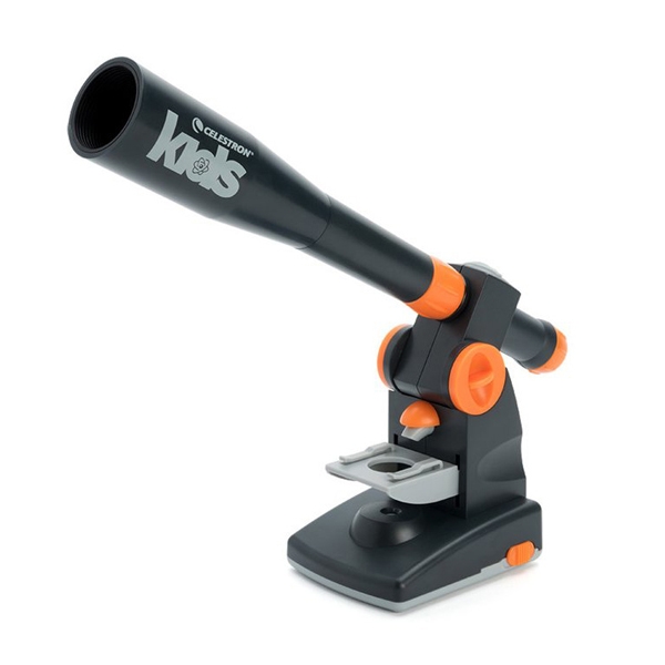 В два счета (точнее, за два движения) этот микроскоп-трансформер превращается в настольный телескоп с диаметром объектива 30 мм. Сила увеличения этого простейшего рефрактора – 15x: ее будет достаточно для рассматривания лунного диска и частичного обзора звездных скоплений.