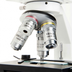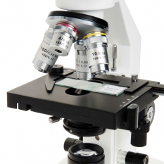 Бинокулярный микроскоп благодаря своей цельнометаллической конструкции отличается крепостью и устойчивостью. Полностью настраиваемое механическое управление предметного столика позволит расположить предметное стекло нужным образом. Три встроенных цветных фильтра обеспечат высокое качество получаемого изображения. В комплектацию устройства включены десять готовых микропрепаратов, которые позволят окунуться в мир исследований сразу же после покупки микроскопа. Конденсор Аббе N 1.25 вместе с ирисовой диафрагмой концентрируют и фокусируют нижнюю светодиодную подсветку, что позволяет использовать микроскоп для научных исследований в условиях биологических лабораторий или школ.