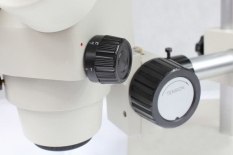 Переключатель увеличения на обьективе: 0,8x-3,5x. Увеличение меняется ступеньчато, от 4х до 35х, при наличии окуляра 20х (опция) - 8х-70х, при использовании насадки о.5х увеличение - 4х-17.5х.