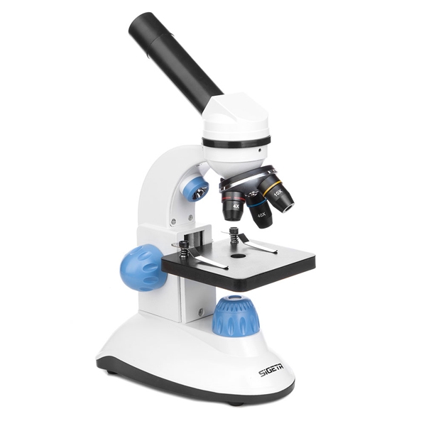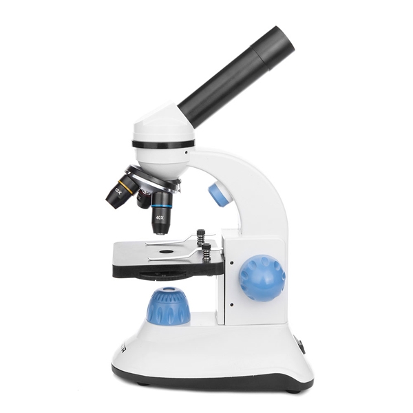 Классический школьный микроскоп с двойной LED-подсветкой и добротной стеклянной оптикой. С комплектным окуляром и тремя линзовыми объективами на 4, 10 и 40 крат может генерировать увеличения в 40x, 100x и 400x.