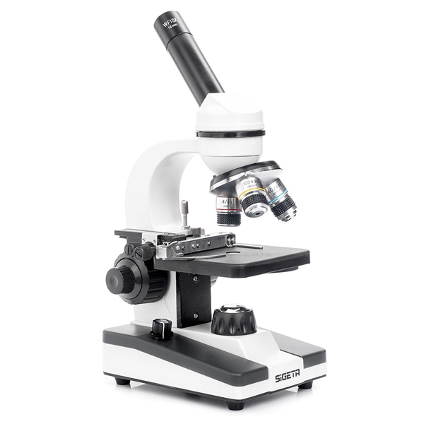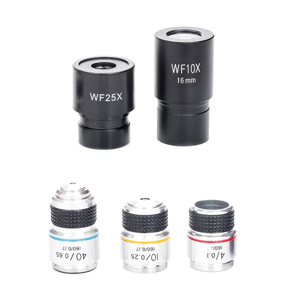 В комплектацию микроскопа SIGETA MB-120 входят 3 качественных объектива со степенью коррекции ахромат (4x, 10x, 40x) и пара WF-окуляров различной кратности (10x и 25х). При работе с наиболее мощными объективом и окуляром суммарное оптическое увеличение составит 1000 крат. Этого достаточно для исследования окрашенных микробиологических препаратов, тканей и жидкостей различных живых организмов.