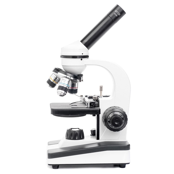 Биологический микроскоп начального уровня, один из самых покупаемых школьных микроскопов. Эта невысокая, компактная модель с гнутой металлической станиной легко умещается на ученическом столе. Тубус монокулярной насадки допускает поворот на 360° в любую сторону, а значит, соседи по парте смогут работать с микроскопом попеременно, не вставая.
