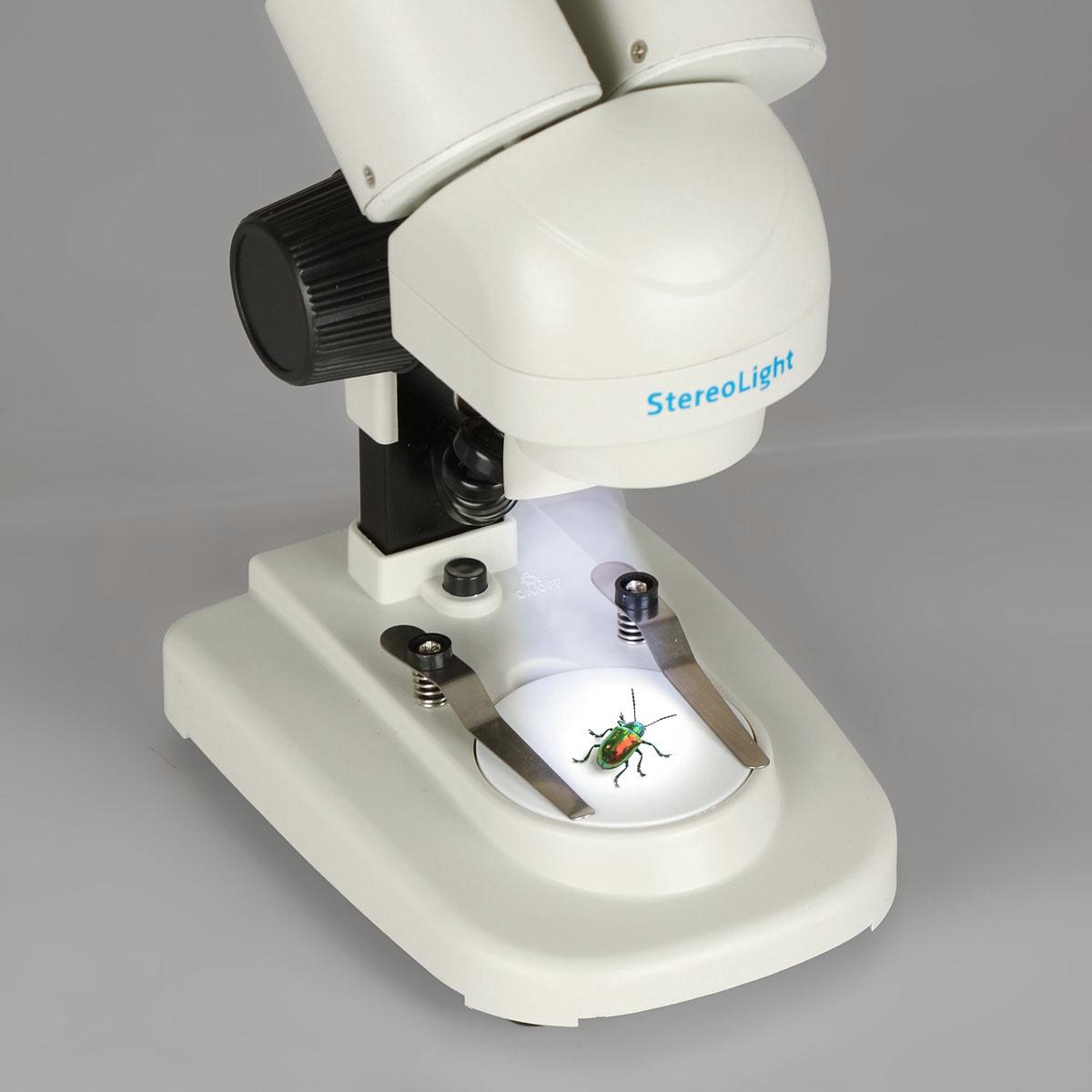Микроскоп Delta Optical StereoLight - стереоскопический микроскоп от польской компании Delta Optical для начинающих. Имеет увеличение 20х, верхнюю подсветку препарата светодиодом, работает от батареек (2хАА), компактный корпус и приличное качество изображения.