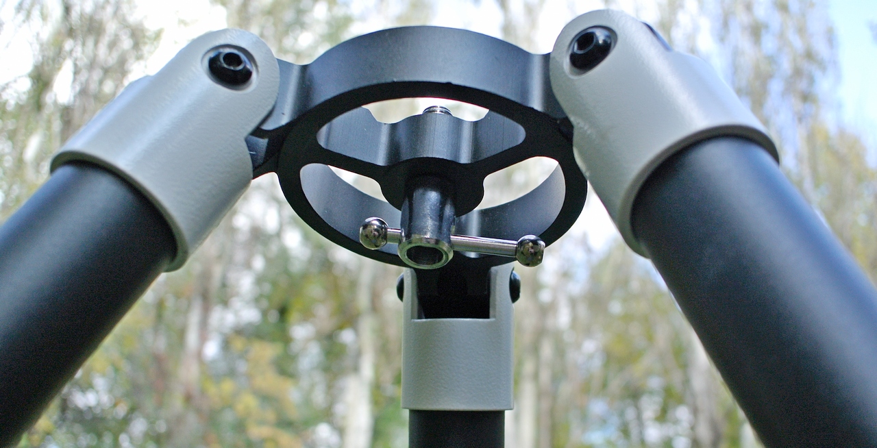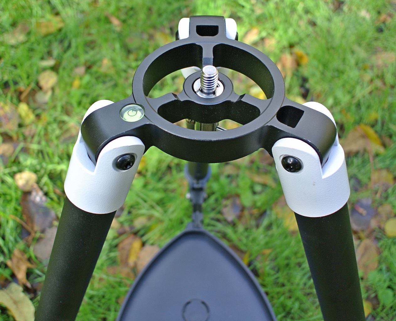 На одной из петель основания монтировки установлен пузырьковый уровень. На этой монтировки он не нужен - это следствие унификации. Однако если эта тренога будет использована под монтировку с GO-TO или экваториальную монтировку, этот уровень будет востребован, поскольку установка по уровню - важный шаг настройки монтировки (aligment).